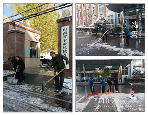 11月6日,龍城太原迎來(lái)了入冬以來(lái)的第一場(chǎng)降雪,忽如其來(lái)的降溫降雪使得道路出現(xiàn)積雪結(jié)冰情況,給人們出行造成一定的安全隱患。7日清晨,按照管理局毛益民局長(zhǎng)的指示,晉勤集團(tuán)緊急安排部署各單位清理所轄辦公區(qū)和宿舍區(qū)的積雪和結(jié)冰。各單位積極反應(yīng),為保障干部職工正常出行,立即組織人員清理辦公區(qū)、戶外活動(dòng)場(chǎng)所和路面通道的積雪和結(jié)冰。集團(tuán)領(lǐng)導(dǎo)分別到各辦公區(qū)看望慰問(wèn)大家,對(duì)大家冒著嚴(yán)寒清雪除冰表示感謝!