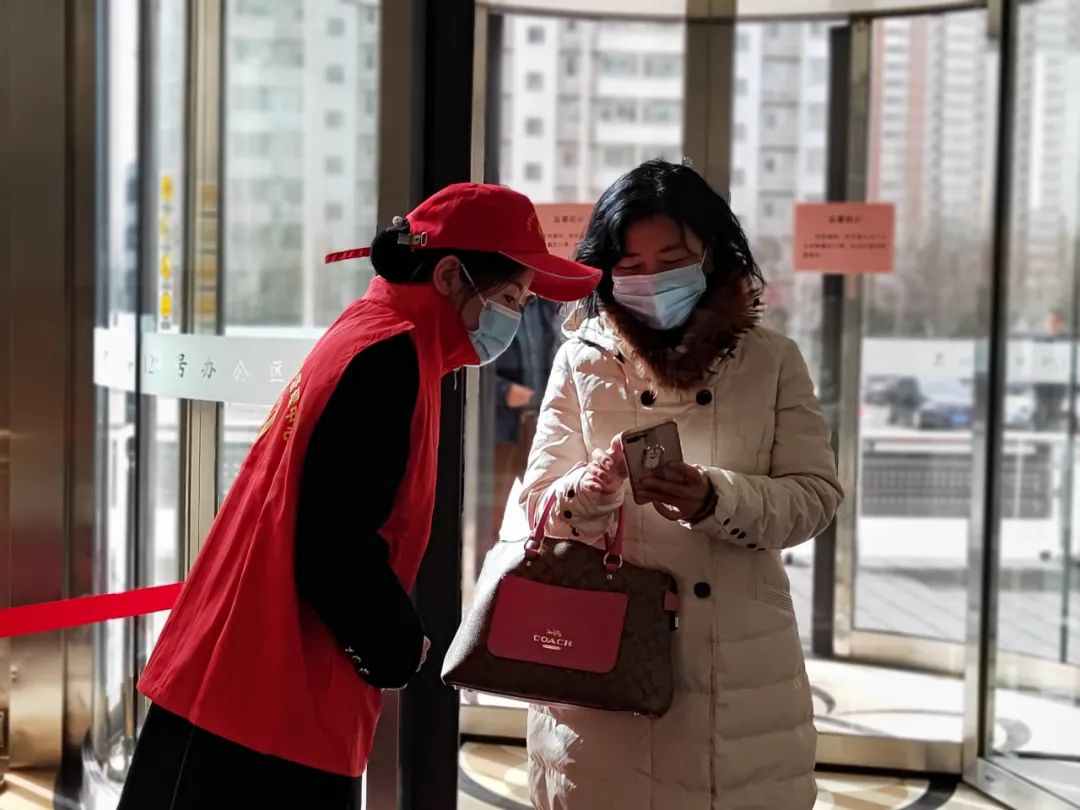 在辦公區(qū)域疫情防控卡口協(xié)助工作人員做好疫情防護(hù)知識(shí)宣傳、出入人員登記、兩碼查驗(yàn),體溫檢測(cè)等工作。