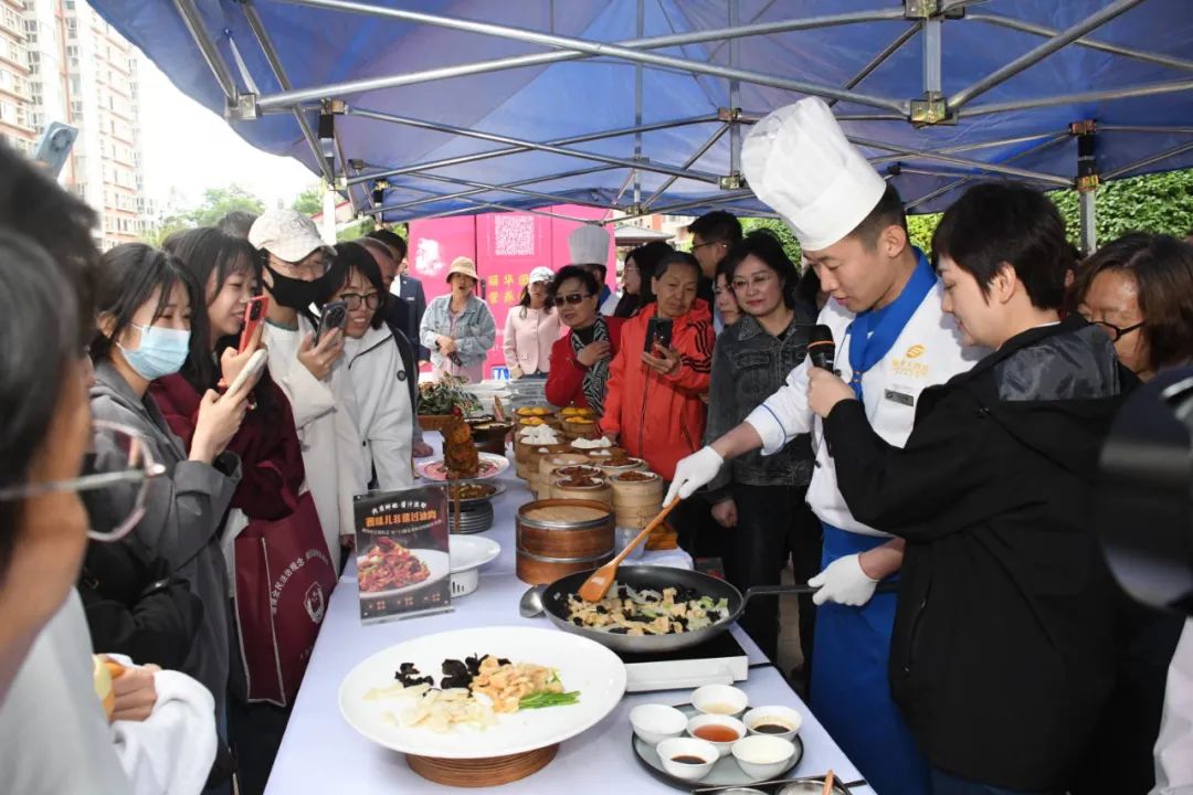 會(huì)務(wù)集團(tuán)麗華大酒店廚師現(xiàn)場(chǎng)教學(xué)“非遺過油肉”制作。