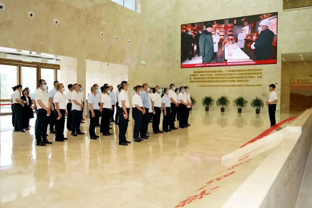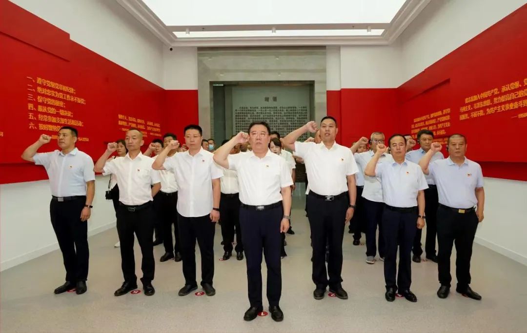 在宣誓廳,大家面向鮮紅的黨旗,高舉右拳,在鏗鏘有力的誓詞中,重溫了宣誓入黨時的莊嚴承諾,堅定了共產(chǎn)黨員的政治責任和初心使命。