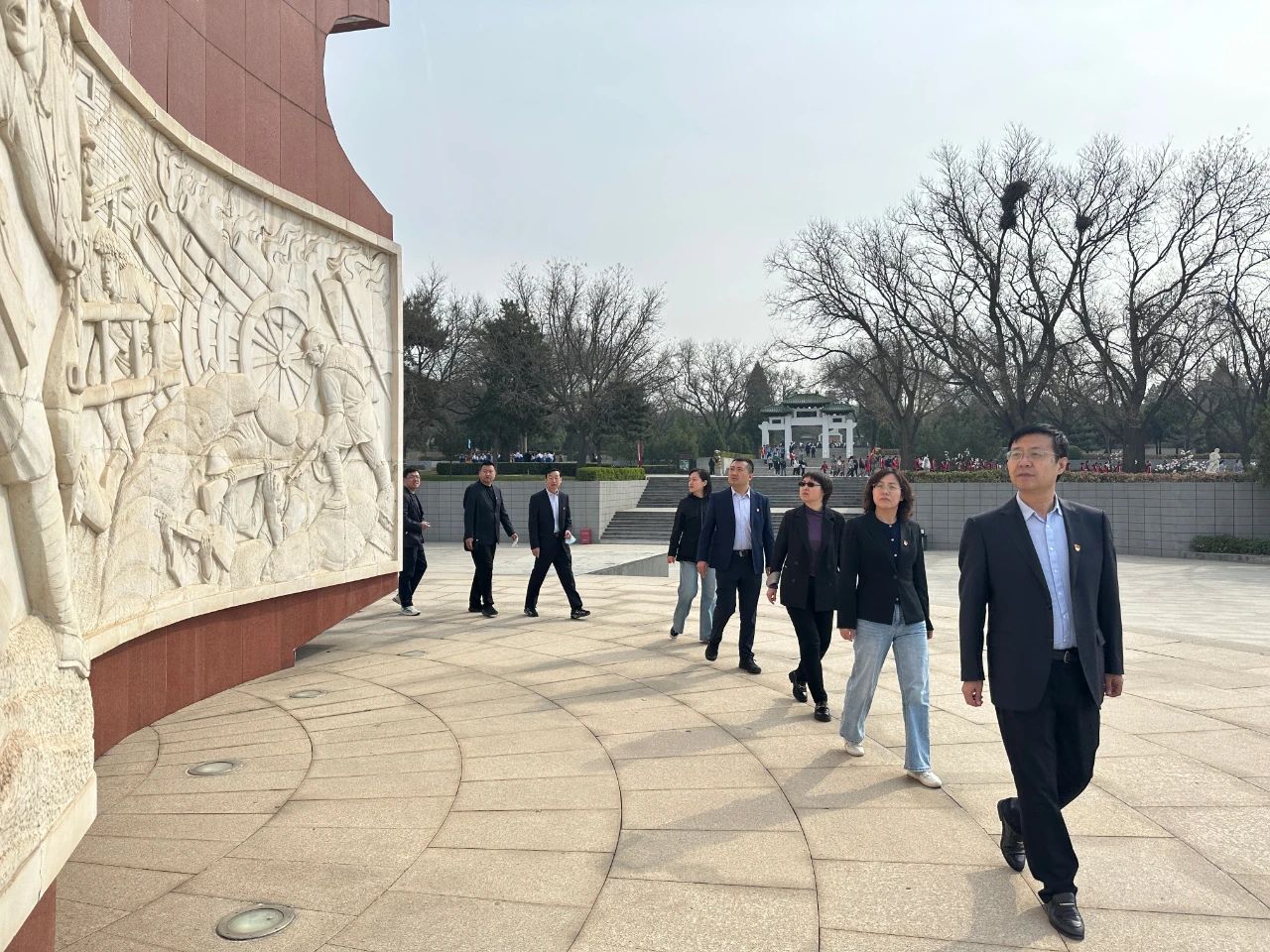 3月31日,晉勤集團(tuán)住宅中心組織全體黨員、中層干部、入黨積極分子及青年團(tuán)員20余人,前往牛駝?wù)沂苛陥@開展清明祭掃主題黨日活動(dòng),干部職工先后瞻仰了紀(jì)念碑區(qū)、陵墓區(qū)和展覽館區(qū),通過齊唱國(guó)歌、敬獻(xiàn)花籃、學(xué)習(xí)史料等形式,向革命烈士表達(dá)崇高敬意和深切哀思,堅(jiān)定奮發(fā)有為、干事創(chuàng)業(yè)的信心決心。