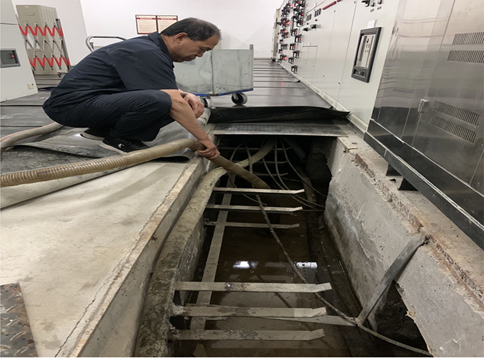 集團廣電后勤服務(wù)中心搶修電纜井積水